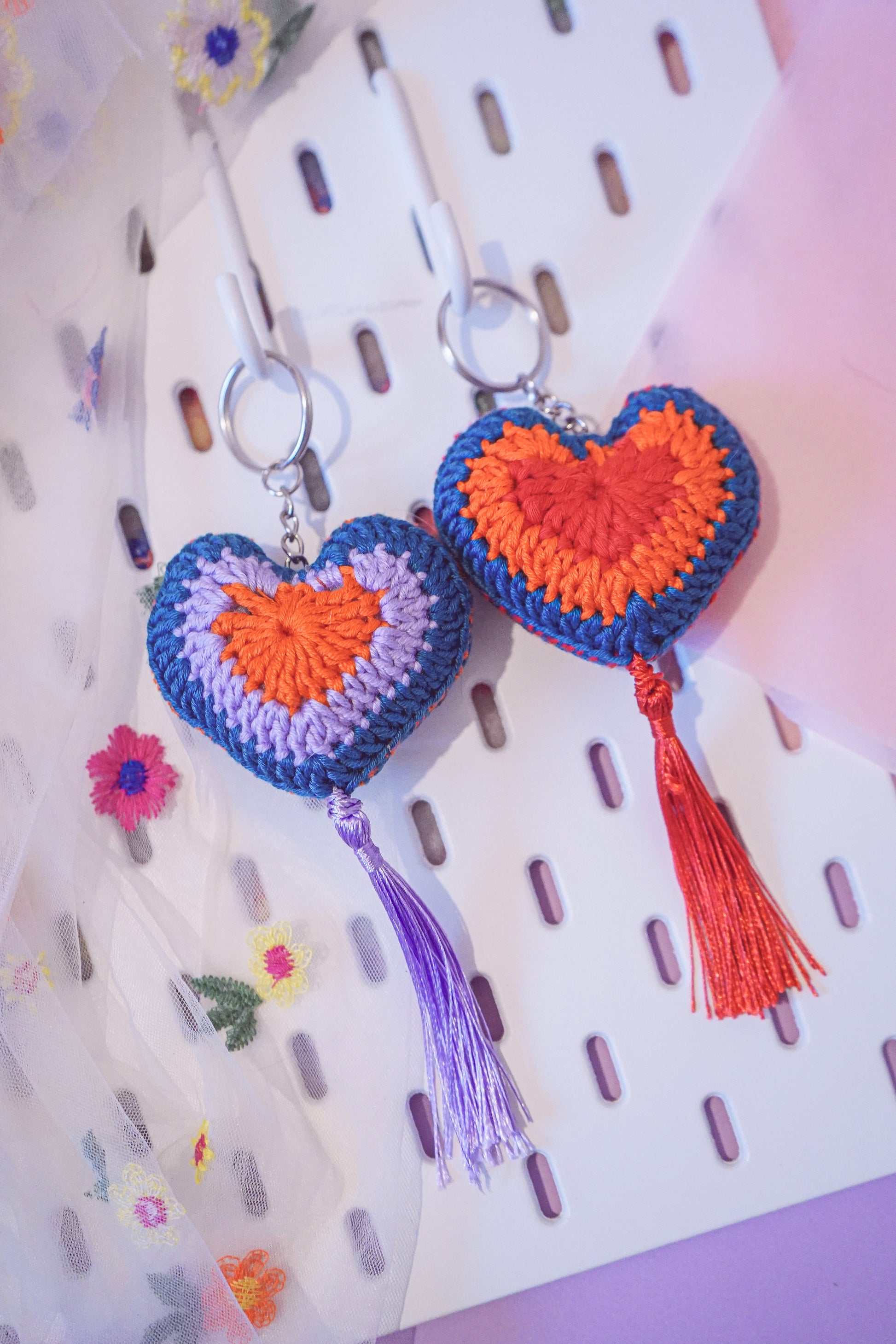 Hand made with acrylic yarn and good vibes. These keychain are packed with colour and attitude to brighten up the crap show of everyday life.